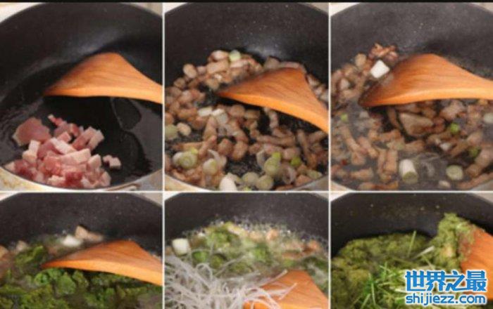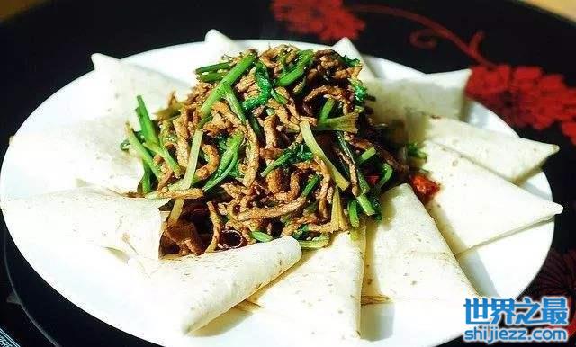 景芝小炒肉是用香菜、韭菜、贡菜和猪肉炒制而成,肉丝鲜嫩,香菜清脆,香气扑鼻,也是潍坊著名的特色菜。