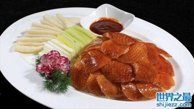 烤鸭皮蘸白糖吃更佳,烤鸭肉应该配着饼吃,加上面酱,黄瓜和葱丝,一口一个小饼,让人唇齿留香回味无穷,游客到了北京,吃烤鸭几乎已经成了必修课。最著名的应该就是全聚德烤鸭,去全聚德吃烤鸭还要提前排队,足见其生意兴隆。