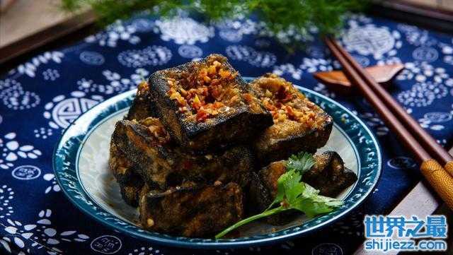 正宗的臭豆腐起源于湖南长沙,也不知道它和柳州螺蛳粉哪个比较臭,反正也有一部分人对它敬而远之。臭豆腐以优质黄豆为原料,制作工艺较为复杂,黄豆经过筛选、脱壳、浸泡、磨浆、过滤、煮浆、点浆、成型、划块、发酵等十道工序,最后变成黑色的豆腐干。