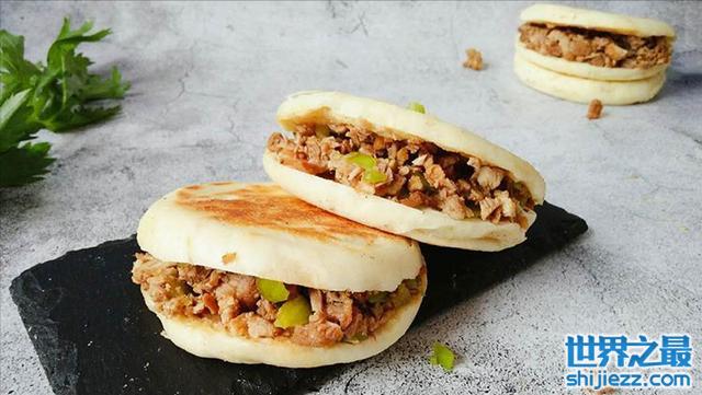 这道小吃也来自西安,西安人的会吃也是出了名的。在西安,大家吃着凉皮,再配上一个肉夹馍真是每天最幸福的事。肉夹馍的馍和肉都有讲究。馍需要用千层油酥饼,一口下去要酥的掉渣才算正宗。