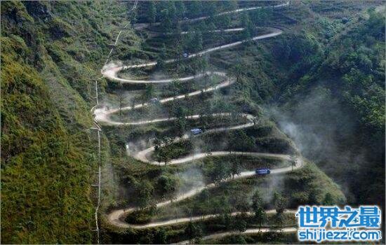 贵州二十四道拐盘山公路从名字来看,就是有24个拐弯的公路,当你看到俯瞰图的画,你会惊讶到认为这是一条波浪线,它的高度非常好,而且这条公路是依山而建的,所以才有了S形,晚上的时候这条公路上面的路灯打开,binglingbingling的非常好看。