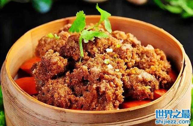 淅川粉蒸肉是南阳的特色名菜,其做法和很多地方的粉蒸肉都差不多,唯一不同的是淅川粉蒸肉在蒸制之前先加入了菁茅(菁茅是一种香草)一起腌制,这样蒸出来的粉蒸肉带着菁茅的香味,味道很是独特。