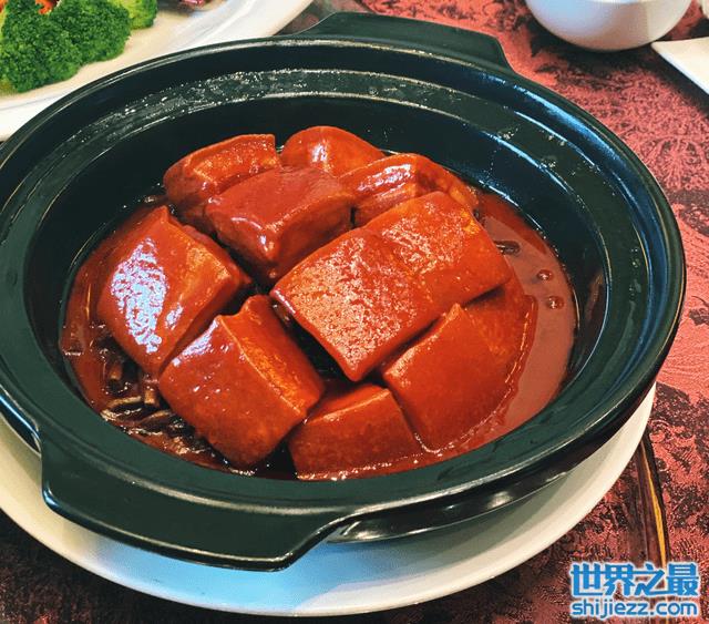 一道肥而不腻,可盐可甜的毛氏红烧肉是湖南的特色名菜之一,首先五花肉烫毛切块,锅中起油,炸至金黄,加入冰糖、香料,煸炒出香,最后放入煲中小火慢炖40分钟即可。小编我当年在湘菜馆里面吃菜的时候,一看到毛氏红烧肉,我的口水都快要流出来了,夹起一块来尝的时候果然是非常肥美的口感。
