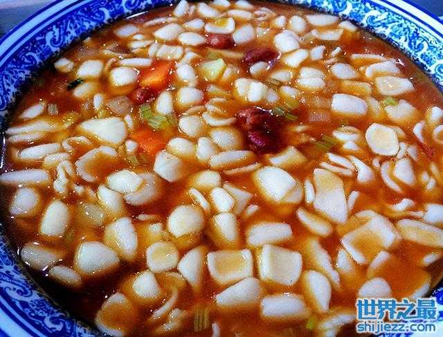 猫耳朵是浙江杭州的特色小吃,是一种看起来形状很像猫耳朵的面食。制作杭州猫耳朵需要先将面粉揉成面团,然后做成小剂子,用大拇指按压一下做成猫耳朵的形状,然后和虾仁、干贝等多种辅料一起蒸煮而成。吃起来面有筋道,汤汁鲜美,一碗下肚都不满足。