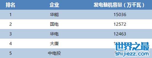中国五大发电集团:中国华能集团公司、中国大唐集团公司、中国华电集团公司、中国国电集团公司、中国电力投资集团公司、