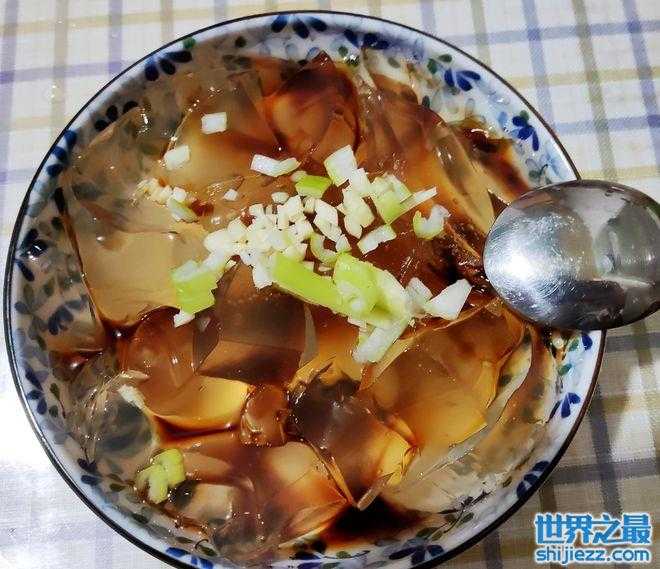 拌海凉粉是大连的特色小吃之一,是来大连不能错过的特色美食!管是凉皮、粉丝、粉条还是肠粉,都没有海凉粉的清凉口感。海凉粉的原料很特别,用海毛菜晒干之后煮水晾凉就会成冻状,用刀划几下切成块,用蒜泥等调料拌一下装盘即可,吃起来清新爽口,味道独特,一吸就滑进去了,具有让人尝过便难以忘记的魔法。