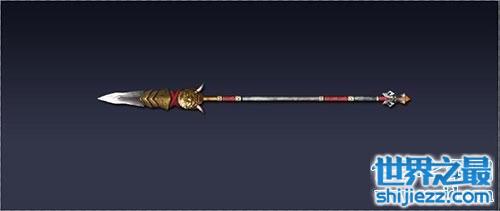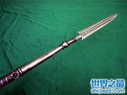 龙、虎向来是象征勇敢、勇猛、力量,下面这个名枪,名字就听起来有力量,虎头湛金枪。三国时期的马超名将的随身武器,枪头铸造成了虎头的形状,枪杆材料用的是精钢锻造,整条枪,直立与地,就能感到它的威力。