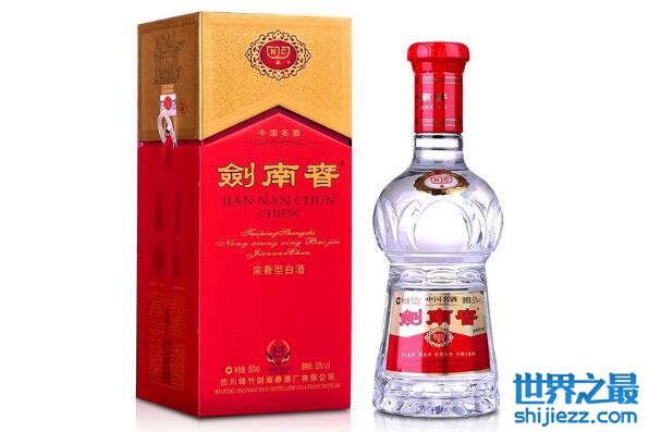剑南春产于四川省绵竹市,是中国传统名酒之一,其酿造历史悠久,最早可追溯到唐朝,酿造技艺也十分独到,还被认定为国家非物质文化遗产,其芳香浓郁,口感醇厚绵柔。