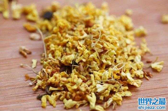 桂花是杭州的市花,当地人自己晒干且晾制成的桂花干,既可以制作桂花糕也可以用来泡茶,具有一定的养颜效果。