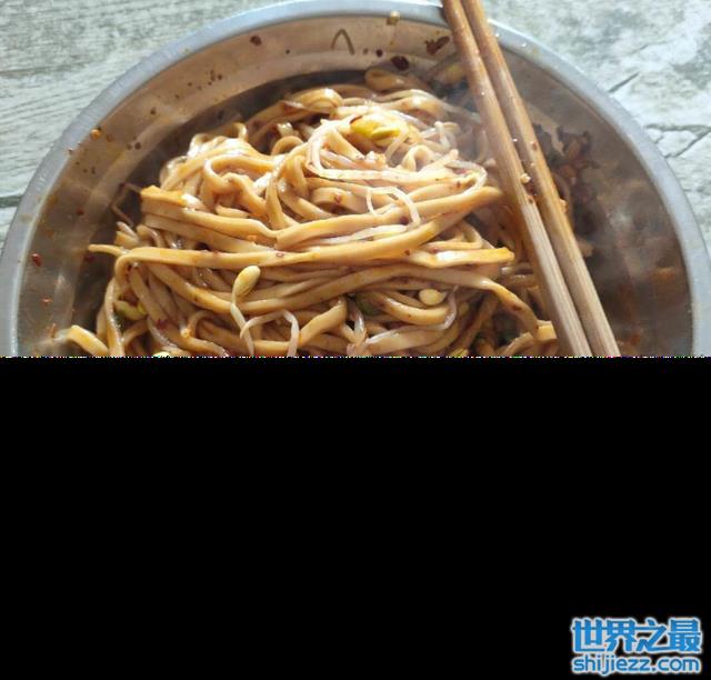 阜阳格拉条是安徽阜阳地区传统名小吃,简单做法就是,用机器压出非常劲道的面条,放在沸水锅里煮沸捞出,过一遍凉水,撒入芹菜末、榨菜末、盐、味精、酱油、芝麻酱、辣椒油,搅拌均匀即可。小编我每次回家都必须要吃的那口味道,面条非常劲道,每根面条上都裹满了酱料,吃完有股香味遗留在口中。