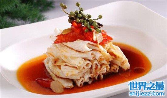 脆鹅肠听到这道菜的名字就感觉比较恶心,厨师将刀子捅向活生生的鹅的肚子,并且随着鲜血的流出,鹅的肠子也慢慢的出来,就这样将它们清洗干净之后撒上一些佐料就被端上了餐桌,相信这道菜没有几个人有胃口,被称为禁菜之一。