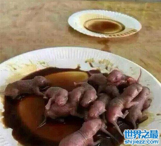 三吱儿被称为中国十大禁菜,这道菜是以幼小的老鼠为原材料,再加上一盘佐料就被称作一道菜。所谓三吱儿,就是在用筷子夹它的时候、放在蘸料中、进入口中,各会发出一声吱的声响,有点恐怖,然后感觉比较恶心,你敢享受吗?