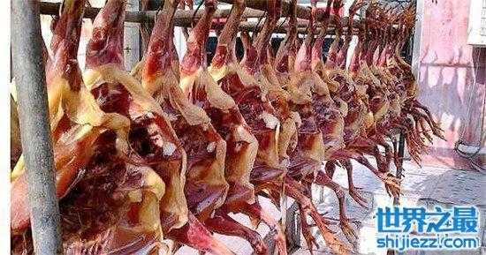 这道菜真的是丧失天理啦,将一只活的驴栓起来,然后顾客喜欢哪部分的驴肉,就用热水泼向它,再割下来,伴随着那一声声的惨叫声,而顾客却在美美地享受着驴肉,超级血腥,真的是一个残忍呀!现在它已经被列为禁菜。每一道菜都不应该建立在其他动物的痛苦之上,就算死也要让他们死个痛快。