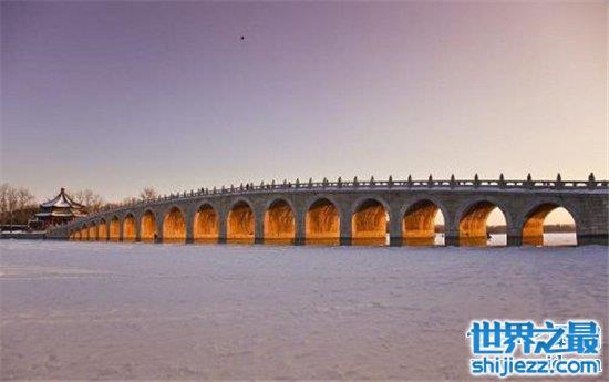 十七孔桥位于中国北京,是中国的古桥代表,它也是古代人民的智慧创作,运用了人文和地理的思想。在一定角度,能够在阳光下展现这十七孔桥的桥洞。人们觉得它在阳光下散发的美如同彩虹桥一般,给人一种直击心灵的体验。