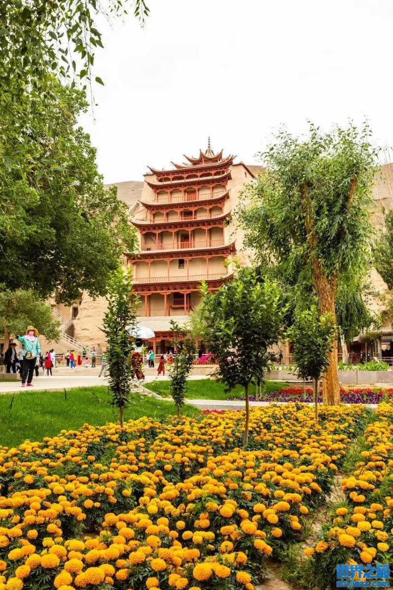 「敦煌莫高窟」是世界上现存规模最大、内容最丰富的佛教艺术地。