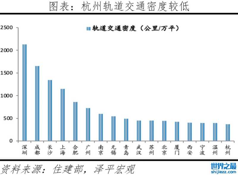 杭州面临产业门类偏科、轨道交通建设落后的问题。第一,杭州产业门类偏科。一线城市在传统制造业、金融、文创、智能硬件、互联网、生物科技、新能源等多个领域多点开花,而杭州的强项主要集中在传统制造业、互联网等少数领域,在其他领域与北上广深存在较大差距。国际上很多产业门类相对偏科的城市都因为产业的更新迭代出现衰落,比如美国的“汽车城”底特律,“钢都”匹兹堡。第二,杭州轨道交通建设仍较落后。目前,杭州已经开通9条地铁线路,总里程超过300公里,跻身全国前10,但整体看轨道交通密度仍较低,轨道交通密度为369公里/万平,低于一线城市,且低于成都、长沙等二线城市。