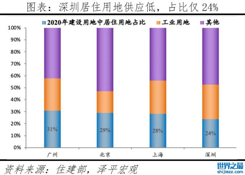 深圳面临着土地资源不足、产业外迁、优质公共服务资源短缺等问题。第一,深圳土地面积仅为1997平方公里,分别为北京、上海、广州的1/8、1/3、1/4,发展空间严重不足。并且深圳居住用地供应不足,2020年建设用地中居住用地占比仅24%,为一线城市最低。第二,受制于土地资源不足,土地成本上升,部分制造业生产部门外迁,华为将生产手机和pad的终端总部搬到东莞,中兴将生产基地迁往河源,比亚迪在汕尾投资建设新能源汽车产业基地。近年深圳发展“飞地经济”破除空间瓶颈,深汕、深江合作区逐渐建立,深圳逐渐从“后厂”发展为“前店”。第三,优质公共服务资源供给短缺已成为制约深圳发展的瓶颈。教育方面,深圳教育资源稀缺,2000-2021年深圳在校小学生由31万增至113万,但学校数量反而由353所降至343所;科教资源不足,虽在大力引进国内名校,但要形成规模还需时日。医疗方面,全市各级各类医院数量只有145家,仅为北京的19.8%、上海的36.4%、广州的50.2%;每千人病床数仅3.3张,远低于北上广。