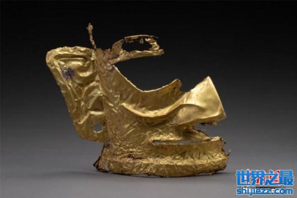 图为四川广汉三星堆遗址祭祀区五号坑出土的金面具。 中新社发 国家文物局 供图