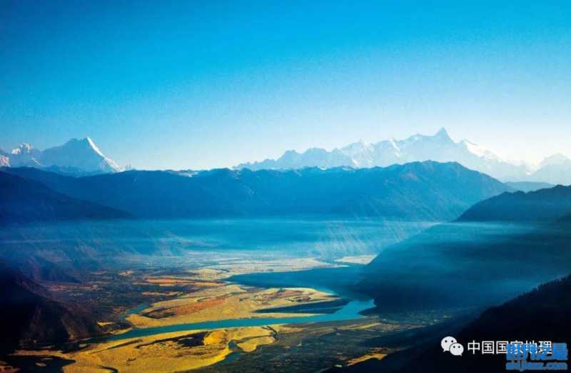 雅鲁藏布江一路向东,流到藏东南米林县派镇以下进入下游,也就进入了著名的雅鲁藏布大峡谷,峡谷大约500公里长,最深处在南迦巴瓦峰和加拉白垒峰之间,深达5382米,峡谷最窄处宽不过74米。目前,这条峡谷仍然是人类的秘境,少有人真正地深入到峡谷中。摄影师在峡谷的入口处为我们拍下了这张照片,远处海拔超过7000米的南迦巴瓦峰和加拉白垒峰清晰可见,它们仿佛是这条神秘峡谷的忠诚守卫者。摄影/李建