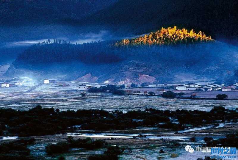 当第一缕阳光照亮哈巴雪山、玉龙雪山和天宝雪山宝鼎的时候,吉沙便笼罩在一片极其动人的景色之中。如果说夏日里的五花草甸是她最有生命力的时刻,那么,秋天便是吉沙一年里色彩最丰富的季节。