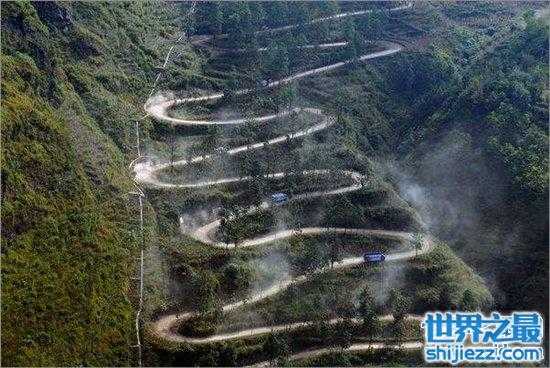 贵州二十四道拐盘山公路仿佛是一个画家随便一画画就形成的连续的波浪线,虽然简单,但是美得不可思议,他作为中国十大最美公路之一,行驶在贵州二十四道拐盘山公路,人们总会由衷的赞叹建筑工人的劳动智慧。