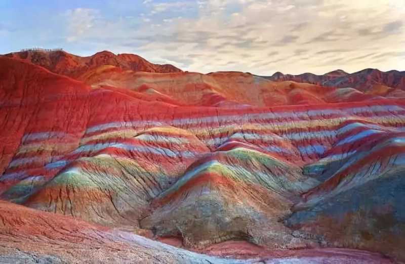 张掖丹霞地貌位于山区和丘陵地带,面积100平方米。它有独特的形状、色斑和巨大的气势!此外,这里的地貌是在大约200万年前从前侏罗纪到第三纪形成的。