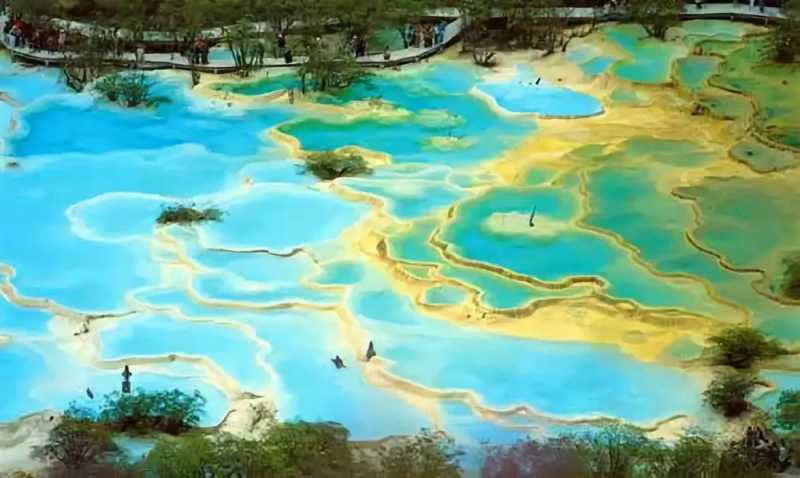 钙化的池水可以随着周围的景观和阳光的角度而变成五颜六色。被称为“人间瑶池”是非常值得的。