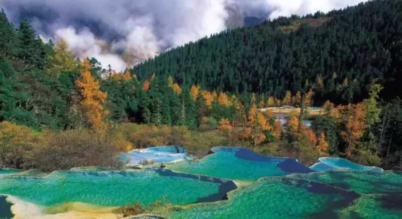 黄龙,一个由3400个钙华池组成的“人间瑶池”,像一条金色的“巨龙”,从浩瀚的森林中流淌而出。