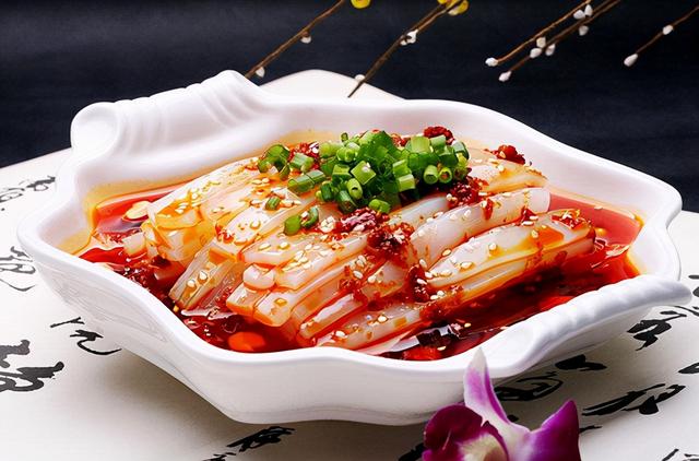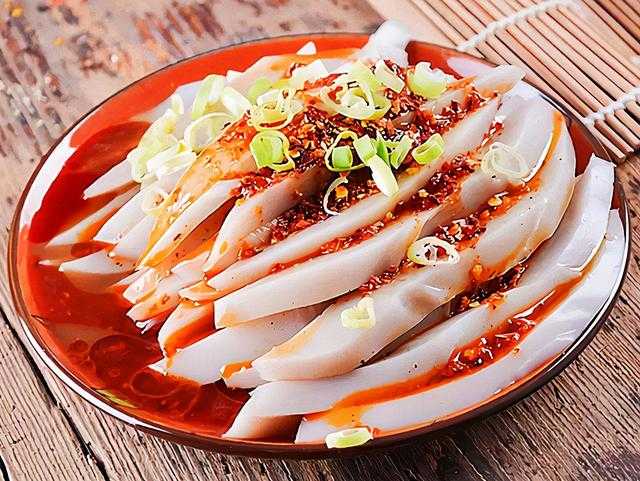 浑源凉粉是山西省大同市的特色小吃,浑源凉粉是用土豆淀粉、豆腐干和蚕豆为主料制作而成的,吃的时候配上陈醋、大蒜、葱花、香菜和辣椒油等调料一起拌着吃,吃起来滑嫩爽口,是山西人炎炎夏日里特别爱吃的一道小吃。