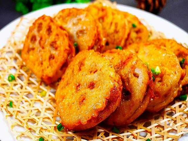 藕夹子是滁州地区的特色名小吃,也有人叫藕合。制作这道美食需要有一定的刀工,需要将每片藕的厚度保持在几毫米这样,而且每两块为一份,中间不能切断,然后在两片藕中间夹上肉馅,外面裹上面粉,放在油锅里炸至金黄即可。吃起来外酥里嫩,香气扑鼻。