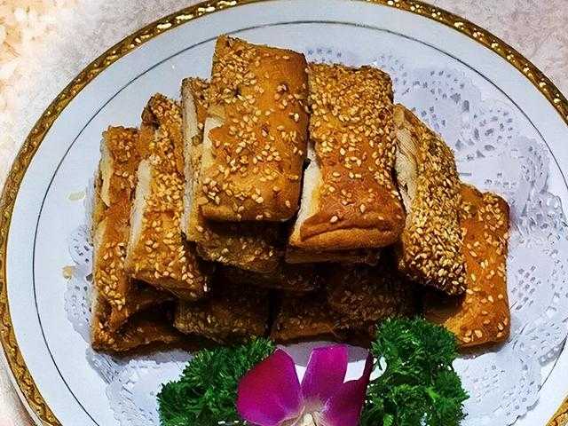 甘露饼是滁州天长市的特色名小吃,同时也是安徽省级非物质文化遗产和国家地理标志保护产品。甘露饼是用糯米饭、猪油、鸡蛋、白糖、苏打粉等原料经过揉面、调馅、擀面、包入馅料、再擀成扁圆形,最后再烤制而成的。吃起来酥香味美,深受喜爱。