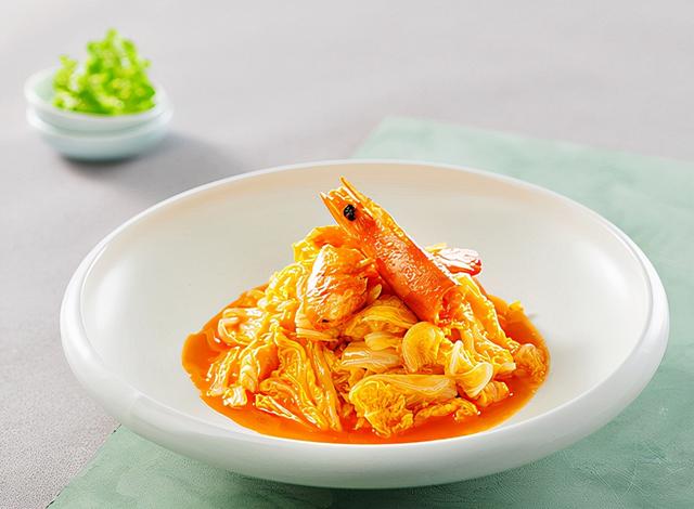 大虾烧白菜是山东青岛的传统名菜之一,这道菜听起来似乎很简单,但是制作起来还是很讲究的,正宗的大虾烧白菜是要选用海捕的大对虾和胶州的大白菜,在烧制的过程中还要掌握好火候,需要把大虾的虾脑炒出来,这道菜才算成功,因为虾脑是大虾中最鲜美的部分,这样才能让白菜吸收大虾最鲜美的汤汁,吃起来才鲜美无比。