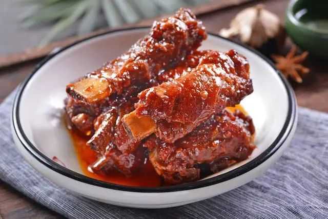 酱排骨是江苏无锡的传统名菜,在当地又叫“无锡肉骨头”,是苏帮菜里最著名的招牌菜,始于清光绪年间,距今已有百余年的历史。无锡酱排骨之所以有名是因为它的烧制方法很独特,兼取了南北两派之所长,烧出来的酱排骨色泽酱红、肉质酥烂、骨香浓郁,几根啃下去回味无穷。