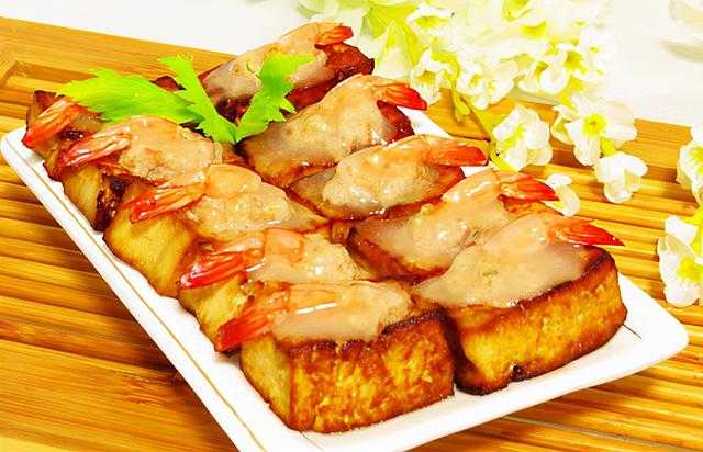 镜箱豆腐是江苏无锡的传统名菜,是由无锡迎宾楼的名厨刘俊英所创。镜箱豆腐的选材可不是一般的豆腐,而是无锡特产的“小箱”豆腐,将豆腐先煎至两面金黄,然后填入肉馅,每块豆腐上再嵌上一只大虾仁,最后再加入多种调料一起在锅中烧制而成。吃起来鲜嫩味醇,好吃下饭。