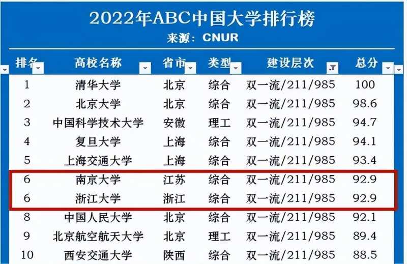 不过在ABC排行榜上,浙大着实让人有些震惊,竟然和南大并列第六,成为华东五校垫底的存在,毕竟它有进前五的实力,那么就需要浙大再接再厉,争取在明年取得上好佳绩,我们拭目以待。