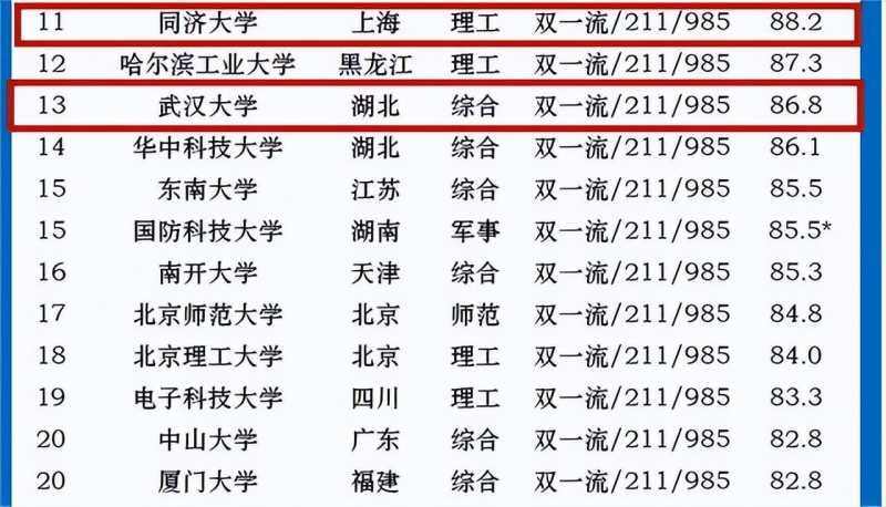 浙大南大并列第六,武大同济跌出前十,让人有些意外