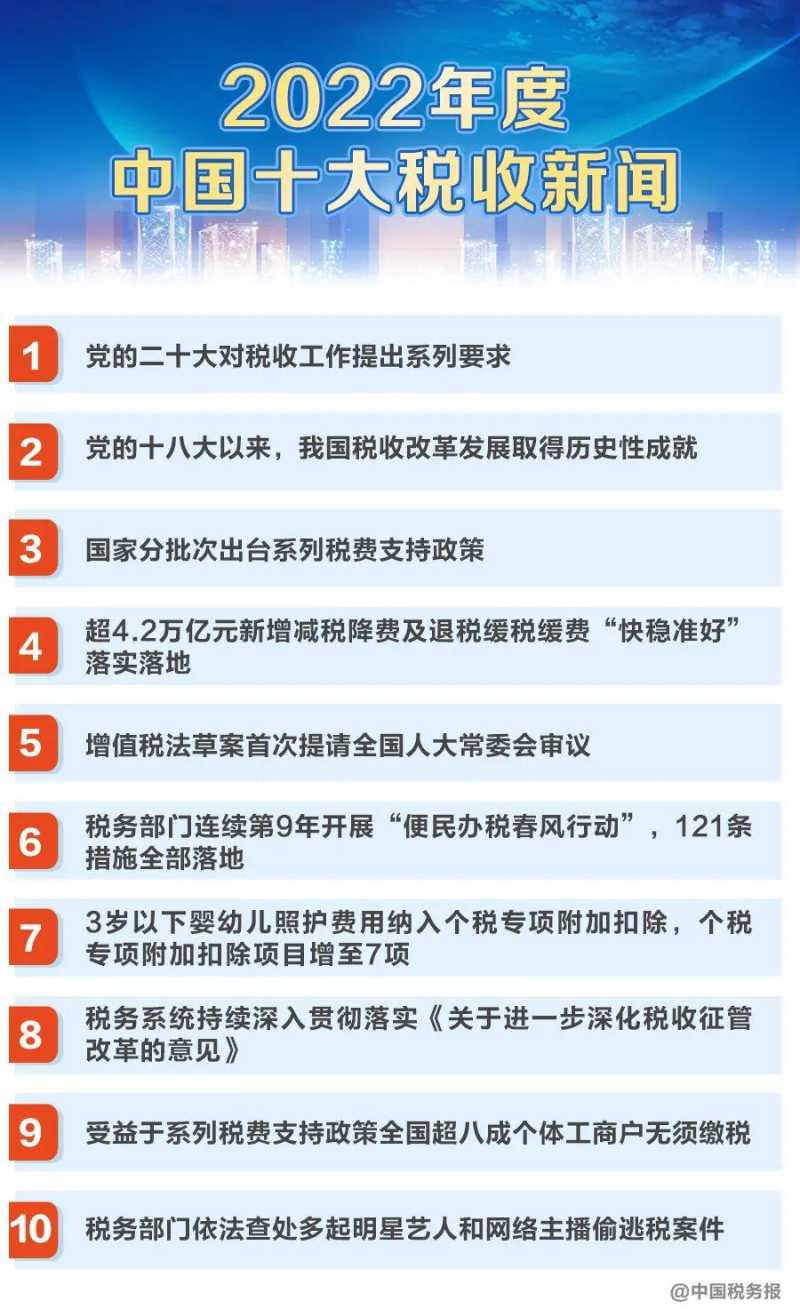 新鲜出炉!2022年度中国十大税收新闻发布
