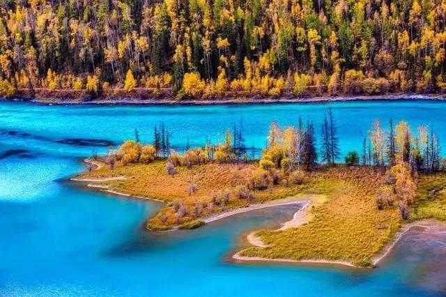 当秋天到来,喀纳斯湖染上成片成片的金黄。这里湖水清澈澄净,水随着光影与周边的景物而变幻着颜色。卧龙湾下,驼颈湖旁,密密麻麻的金色桦树将湖水紧紧包围。秋季,便是喀纳斯面对镜头最多的时候,她尽情地展现着她的斑斓色彩、她的婀娜多姿,绝不会辜负每一个镜头。