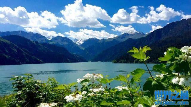 天山天池古称“瑶池”,雪峰倒映,云杉环拥,碧水似镜,风光如画,背后是白雪皑皑的博格达峰,融森林、草原、雪山、人文景观为一体。天山天池以天池为中心,天池湖面呈半月形,湖水清澈,晶莹如玉。四周群山环抱,绿草如茵,野花似锦,有“天山明珠”盛誉,大天池湖面还被称为“天镜浮空”。天山天池最美的季节是夏冬季节,每逢冬季,尤其是雪后的天山天池,冰瀑、雪松、天镜、步道,犹如一幅幅水墨丹青,将冬季的天山打扮的分外妖娆。每到盛夏,湖周绿草如茵,繁花似锦,最为明艳。挺拔、苍翠的云杉、塔松,漫山遍岭,遮天蔽日,俨然一幅大自然的美丽画卷。