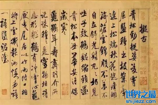 《草书诗帖》是明代书法家祝允明的草书作品,其主要内容是曹植《乐府》四首,后被誉为明代奇才草书绝品,也是中华十大传世名帖之一。