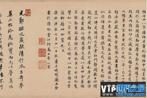《伯远帖》是东晋书法家王珣的行书作品,《伯远帖》的主要内容是写给亲友伯远的信件,是行书早期的典范之作,目前现收藏于北京故宫博物院。