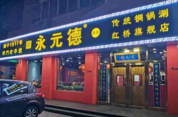这个成立于1917年北京的天津人气火爆的铜火锅店,并于1919年迁入天津,靠爆、烤、涮北京风味炒菜而著称于世,是传统火锅店,以涮羊肉见长,有着京城东来顺、津门永元德美誉,先后获得中华老字号、天津餐饮名店等荣誉。