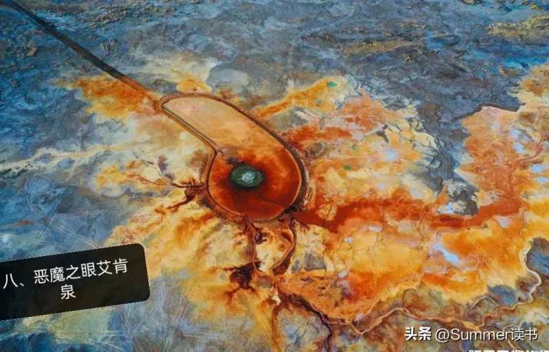 八、恶魔之眼,位于甘肃昆仑山下的茫茫的戈壁滩上,泉水不停地翻滚,周边寸草不生,飞禽走兽也不敢靠近,俯瞰特别像一只灵动的眼球,令人心生敬畏。形容形象贴切,不愧是恶魔之眼,不敢看。