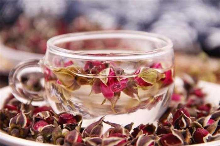 玫瑰花茶为最好的馥郁型花茶,其茶性温和柔润,定期品饮不仅美容养颜、生津止渴、调经解乏,还具有抗抑郁、驱寒暖胃等效果,另外玫瑰花茶的干花茶除了用干花焖泡后,还可以与普洱茶一起制成玫瑰普洱茶,此时将玫瑰花与普洱茶按照5:1的比例焖泡,且先放入普洱茶,用热水洗茶后,再放入玫瑰花茶以及蜂蜜用温水泡开。