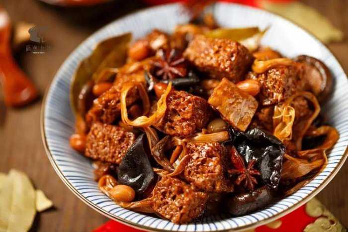 四喜烤麸是上海人年夜饭中常见的冷菜之一,“四喜”指的是香菇、黄花菜、黑木耳、花生米这四种主料,因为名字够喜气,所以经常出现在过年过节等场合,可以当下酒凉菜食用,适合喜甜口的朋友。
