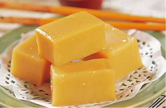 豌豆糕是用优质豌豆磨粉后加入白糖、柿饼、柿子霜制作而成。是太原特色糕类小吃之一,味道香甜可口,甜而不腻,清热解毒,宜夏季食用。