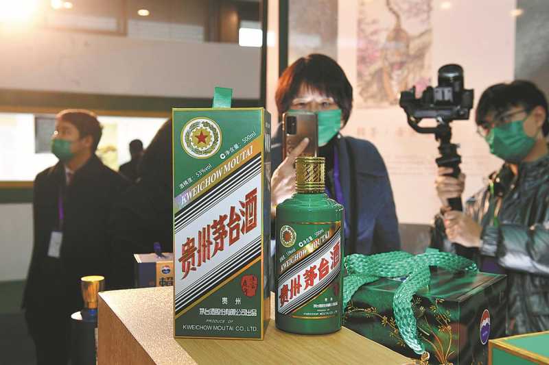 图为贵州茅台在产品发布会上展出了一瓶茅台酒。