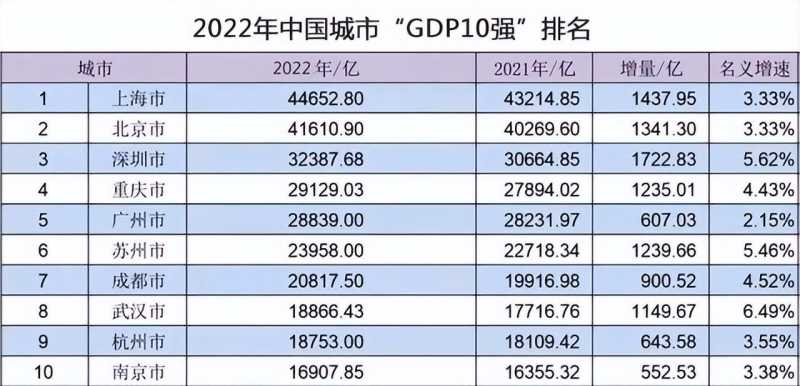 目前我国的“GDP10强”分别是上海、北京、深圳、重庆、广州、苏州、成都、武汉、杭州、南京。