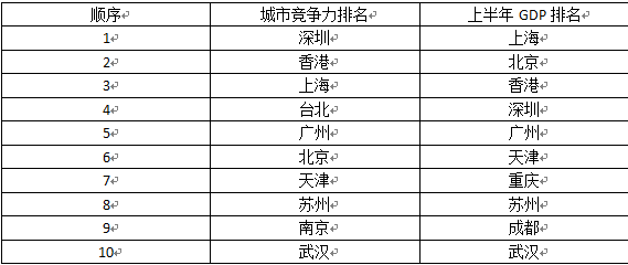 尽管单从GDP来衡量城市竞争力是比较片面的,但有心的笔者整理了中国社会科学院财经院发布的《中国城市竞争力报告No.16》,与2018年上半年的城市GDP进行对比发现:综合竞争力top10的那些城市基本与GDPtop10的城市重合。说明搞好经济才是根本。