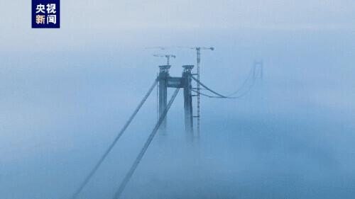 正在建设中的龙门大桥在雾海中若隐若现